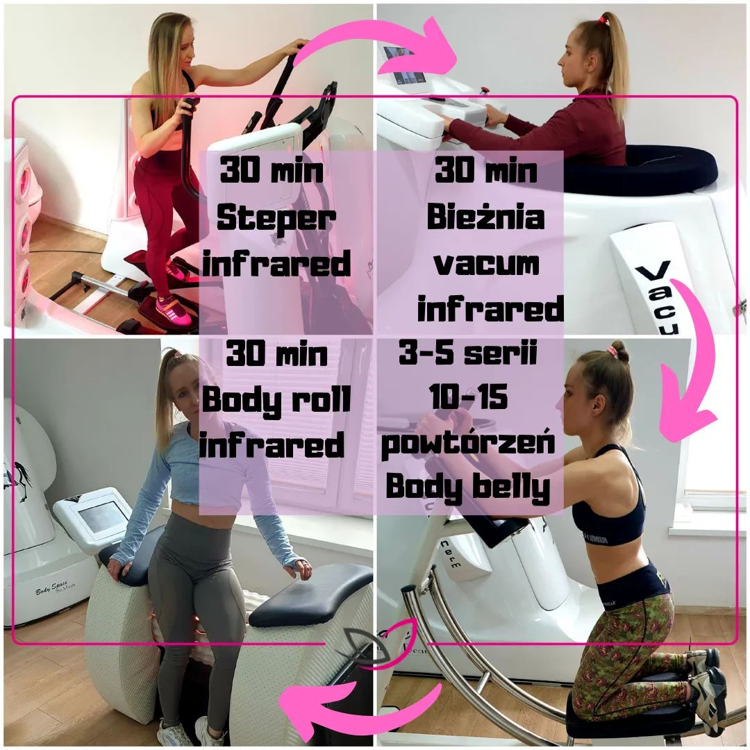- Vacu bieżnia wykorzystuje terapię podciśnienia i podczerwieni.